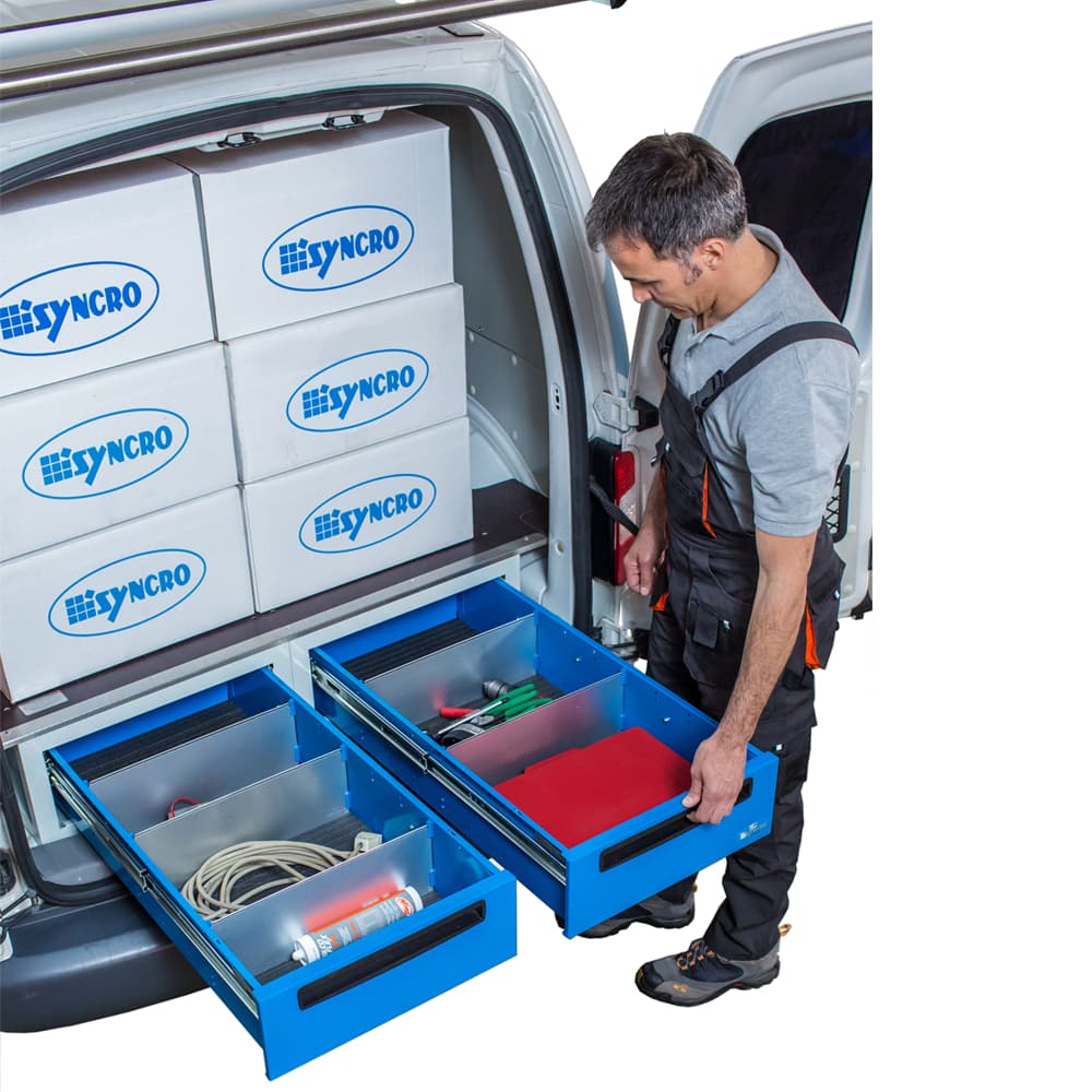 Gracias a una gama amplia y modular de mobiliario para furgonetas, en Syncro España encontrarás la solución adecuada para todas las necesidades y para cualquier furgoneta.